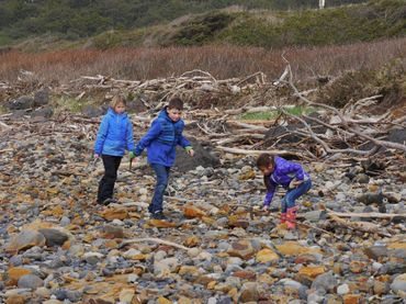 Young geologists learning about the geology of Moolack Beach on the Oregon Coast.